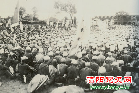 1949年10月,中华人民共和国成立。信阳人民纷纷举行庆祝大会,欢庆新中国的诞生。