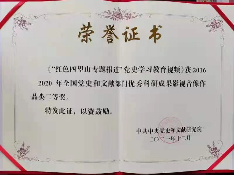 我市党史部门有两项成果获得表彰,信阳市委党史研究室主任祝辉同志撰写的《杨靖宇:东北抗战的精神符号》获论文类三等奖,河南广播电视台和浉河区委党史研究室联合制作的《红色四望山专题报道》党史学习教育视频获影视音像类二等奖。