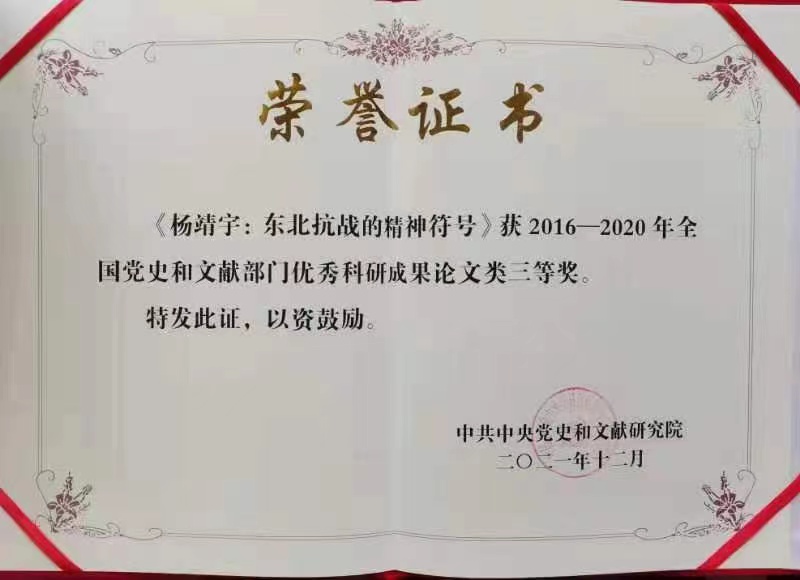 近日,中央党史和文献研究院对2016-2020年全国党史和文献部门优秀科研成果进行了表彰。