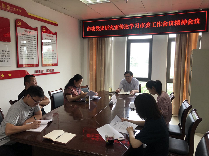 8月3日,市委党史研究室召开会议传达学习贯彻市委工作会议精神,会议由副主任(主持工作)祝辉主持召开,全体干部职工参加会议。