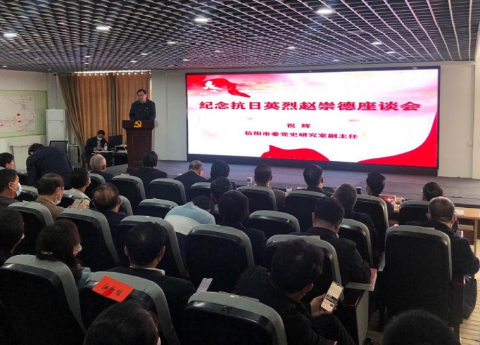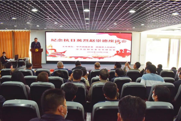 10月19日,由中共信阳市委党史研究室、中共商城县委、商城县人民政府主办的纪念著名抗日英烈赵崇德座谈会在其家乡商城县伏山乡里罗城村召开。