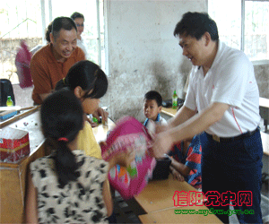 为发挥党员的模范带头作用,进一步作好关爱帮扶农村留守儿童工作,信阳市委党史研究室积极开展“万名党员与万名留守儿童结对助学”活动,本室科以上干部与平桥区高梁店申阳台村7名农村留守儿童结成帮扶对子,开展济困助学活动,以实际行动服务新农村建设。