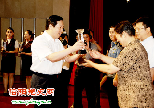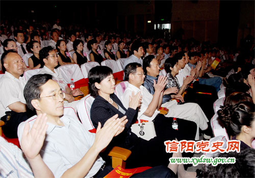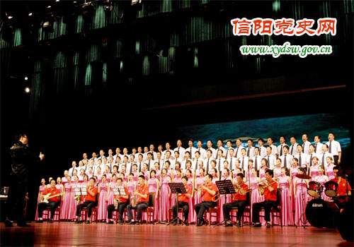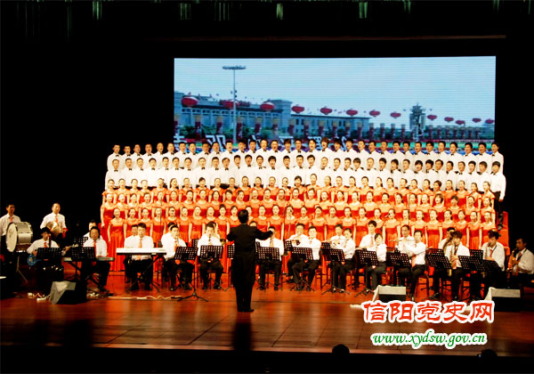 6月22日下午,百花之声大剧院内歌声飞扬、掌声不断。为庆祝党的90华诞,展示市直机关党员干部蓬勃向上、开拓进取的精神风貌,由中共信阳市直工委主办,市文化局、市广电局、市机关事务管理局协办的市直机关庆祝中国共产党成立90周年“唱响主旋律、红歌献给党”歌咏比赛决赛在此隆重举行。市领导王铁、郭瑞民、王道云、姚铁璜、宋效忠、冯鸣、乔新江、高俊峰、张春香、方波、刘国栋、韩强毛、李军、曹新生、赵主明、夏世富与市直机关2000余名党员、干部、职工一起观看了歌咏比赛。市领导并为获奖代表队颁奖。
