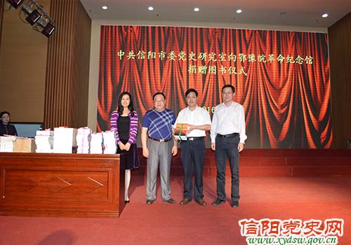 当日上午,为丰富鄂豫皖革命纪念馆“红色书屋”的藏书数量和种类,市委党史研究室主任蒋文俊、副处级纪检员焦予玲、副主任祝辉代表市委党史研究室向纪念馆捐赠了近年来编著的《信阳红色旅游》、《信阳党史大事记》、《信阳党史人物录》、《大别山抗战记忆》、《刘邓大军南征记》等珍贵党史图书110本。这些图书将以“红色书屋”为平台,为建设魅力信阳、文明信阳,弘扬大别山精神发挥重要的作用。