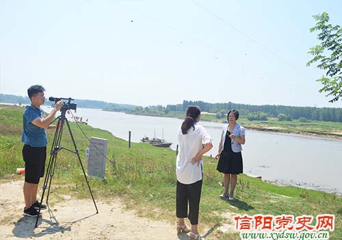 在刘邓大军渡淮处采访息县县委常委、宣传部部长余金霞情景