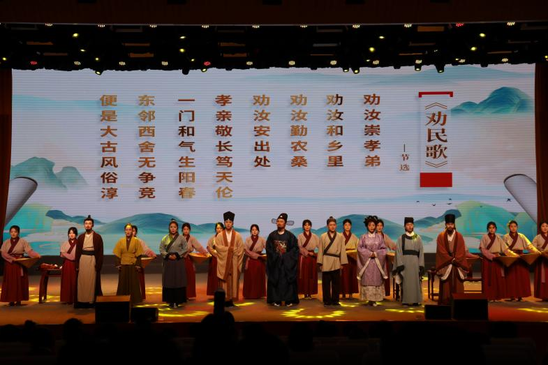 书香满溢四月天,阅读点亮新征程。4月23日,在固始县举办的“书香润蓼城·雅韵颂古今”活动中,世界读书日经典朗诵会中,一幕《劝民歌》将活动推向高潮。该表演生动表现了固始古代官员忠于职守、勤于政务的“循吏”形象,也展示了固始人民守规和睦、勤勉孝悌的良好传统。